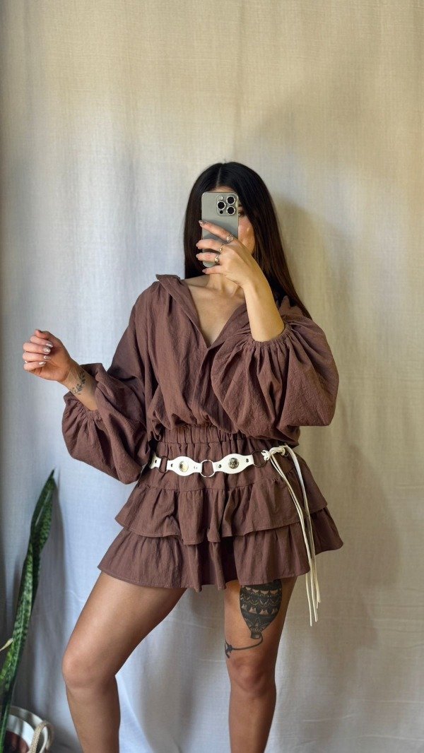 BLUSA DE LINO CON MANGAS AMPLIAS, ELÁSTICO EN FIN DE MANGA Y CUELLO MAO ABIERTO