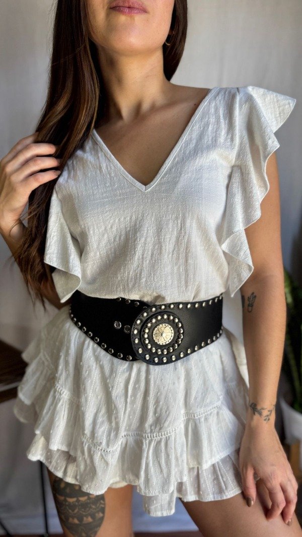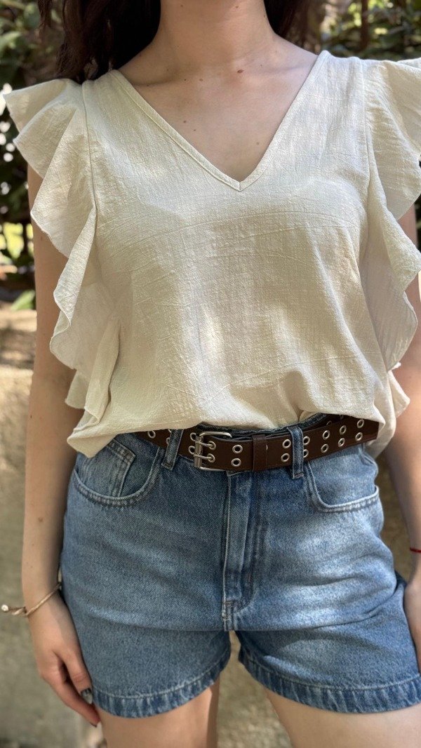 MUSCULOSA DE LINO ESCOTE EN V CON VOLADOS EN HOMBROS
