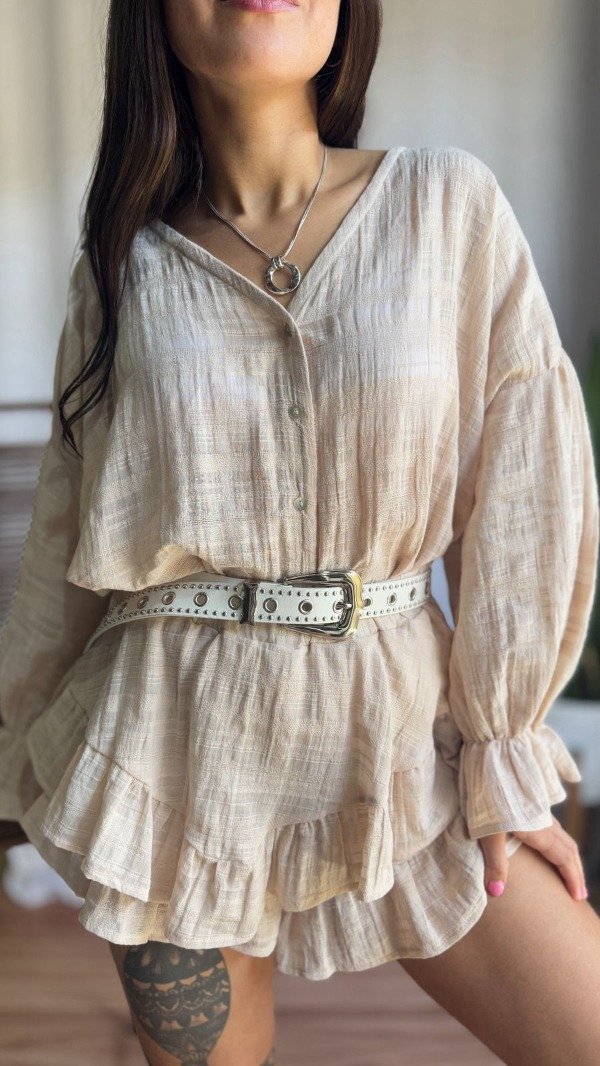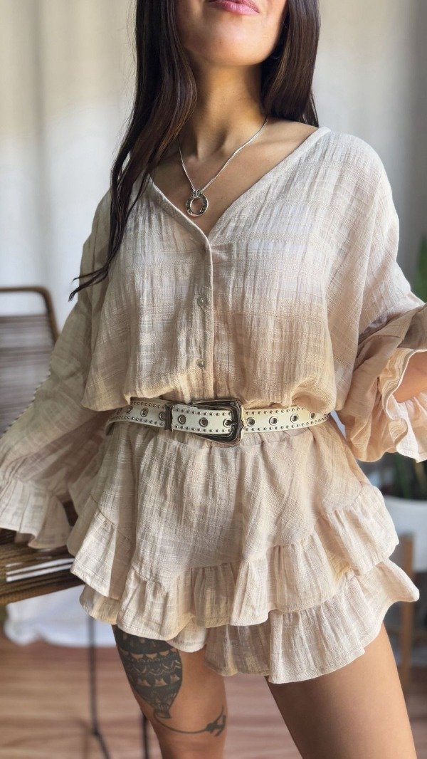 SHORT CON ELÁSTICO EN CINTURA Y VOLADOS, TALLE ÚNICO (M/L)