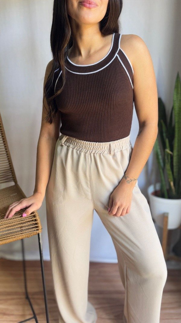PANTALÓN DE LINO CEY CON ELÁSTICO EN CINTURA Y PASACINTO.